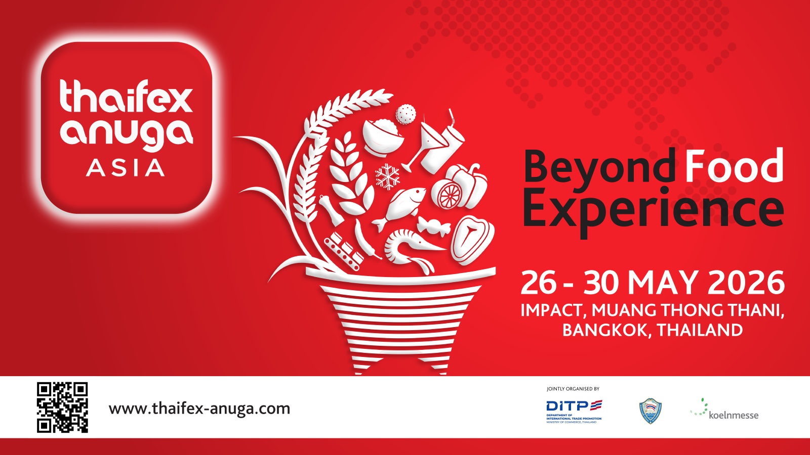 The BCCI is in receipt of invitation from the Department of International Trade Promotion (DITP), Ministry of Commerce, Royal Thai Government about the upcoming THAIFEX – ANUGA Asia 2026 scheduled to be held from 26th – 30th May 2026 at IMPACT Exhibition Center, Muang Thong Thani, Bangkok, Thailand. The event is organized in collaboration with “The Thai Chamber of Commerce” and “Koelnmesse Pte. Ltd.”